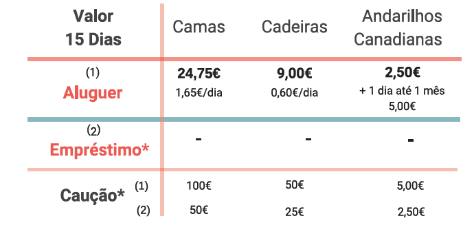 A Cruz Vermelha da Delegação de Braga dispõe do aluguer de equipamento para compensar a limitação física ou atenuar as suas consequências.